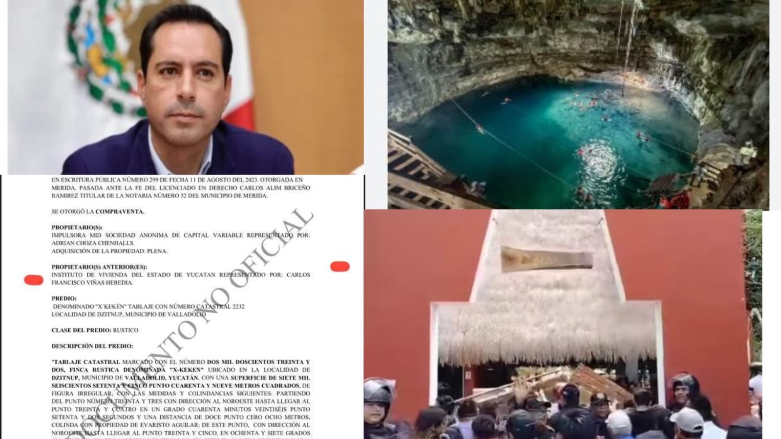 De acuerdo con los documentos que reveló la senadora el IVEY vendió el predio en julio de 2023, precisa que el terreno vendido tiene una extensión de 7 mil 775 metros cuadrados, es decir, aproximadamente 38 pesos por metro cuadrado, en cuyo interior se ubica el cenote X’kekén, por lo que, exige, se investigue el caso y pidió al gobernador actual revisar dichas operaciones y garantice el respeto a las comunidades afectadas.