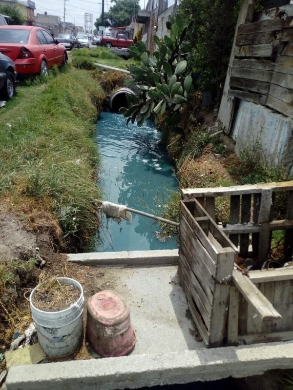 “En las tardes se concentra más el olor, hasta lastima los ojos, en las noches es lo mismo. Vimos la situación del agua de color azul, pero hay otras que viene rojiza, muy sucia. Esto resulta molesto, el olor es muy penetrante, no sabemos de dónde viene el color azuloso, el olor, debe ser una fábrica que está aventando sus desechos a la corriente de agua, y aquí se concentra más”, comentó Benjamín Mejía,