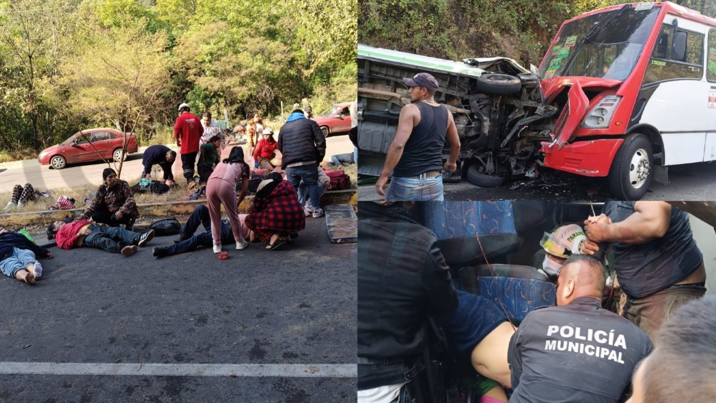 Choque entre autobús y camioneta deja dos muertos y 20 heridos cerca del Ahuehuete