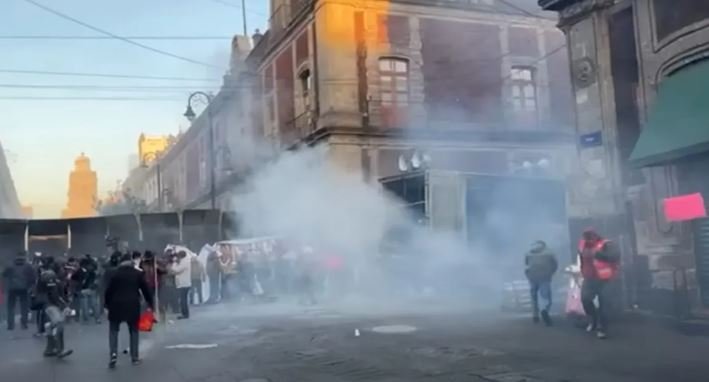 Tras su paso para llegar al Zócalo capitalino para asistir a Palacio Nacional donde la presidenta Claudia Sheinbaum está dando su conferencia mañanera, se registraron conatos de bronca entre el personal académico y elementos de la policía quienes trataban de evitar el paso de la manifestación; video captaron el momento en que fueron encapsulados y roseados por gas.