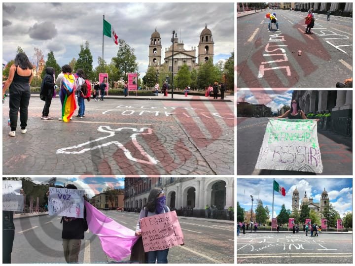 El grupo de feministas se concentraron en el centro de la capital mexiquense para dirigirse a la avenida Lerdo de Tejada, donde por más de dos horas bloquearon la circulación para pronunciarse sobre los casos de feminicidio.