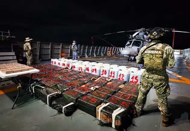 En un operativo histórico, elementos de la Secretaría de Marina (Semar) lograron el mayor decomiso de droga en el mar del que tienen registro autoridades de México; se decomiso aproximadamente 8 mil 361 kilogramos de carga ilícita y 8 mil 700 litros de combustible.