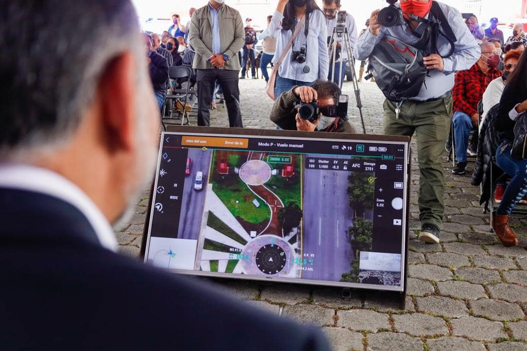 Desde su postura, Jesús Ramírez Manzur, director de seguridad de Metepec, informó que además estrenar equipo táctico, el Ayuntamiento es parteaguas en la utilización de nuevas tecnologías e hizo la demostración de cómo se utiliza un dron, funcionamiento y video captado desde una computadora.