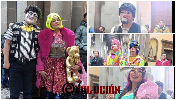 Cientos de payasos de diversos municipios del Valle de Toluca se congregaron en la catedral para escuchar la misa realizada por el Día Internacional del Payaso.