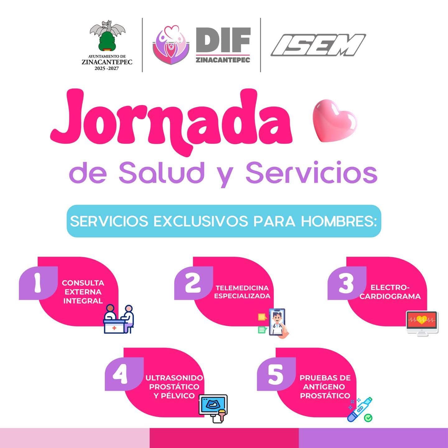 Durante esta jornada tendrán servicios exclusivos para hombres, como consultas externas integrales, telemedicina especializada, electrocardiograma, ultrasonido prostático y pélvico, y pruebas de antígeno prostático (este último, únicamente hombres mayores de 40 años de edad).