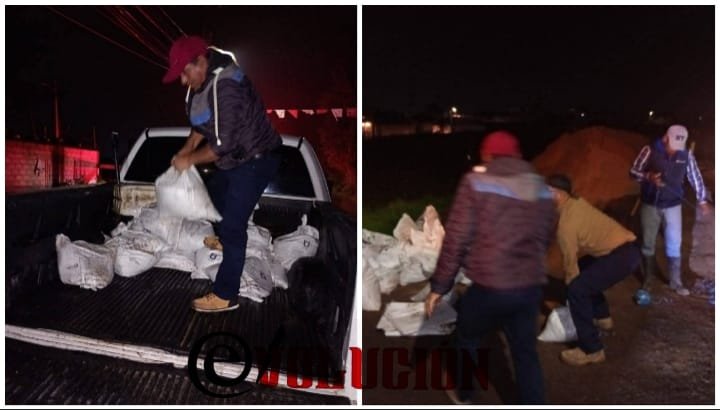 Los pobladores reportaron que el agua había alcanzado el medio metro de alto, por lo que una plantilla de trabajadores de la administración municipal realizó el encostalado del cauce para evitar más afectaciones.