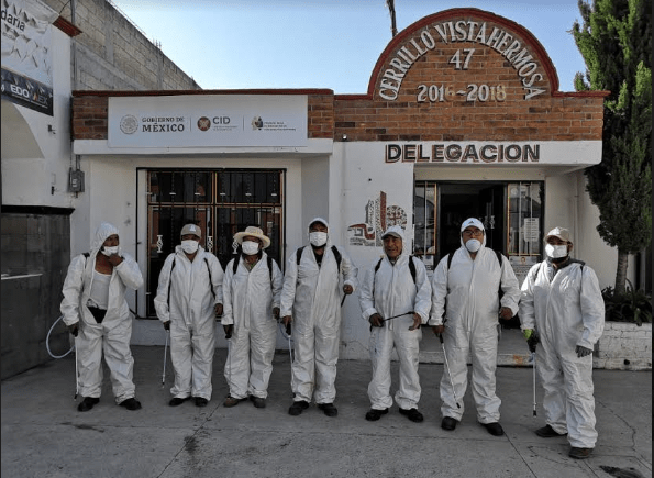 Asimismo, servidores públicos replicaron estas faenas, que consisten en rociar sustancias químicas a base de sales cuaternarias de amonio de quinta generación, en edificios delegacionales, escuelas y tianguis de: El Cerrillo Vista Hermosa, Tecaxic, Santiago Tlacotepec y San Felipe Tlamimilolpan.