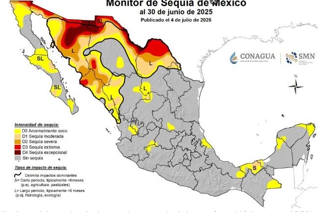 También informó que la temporada de ciclones 2025 ya ha superado el promedio histórico en cuanto a actividad e intensidad; la sequía más severa del país en los últimos años fue en 2021, cuando llegó a afectar más del 80 por ciento del territorio nacional, y tras ello, destaca que zonas del norte como Coahuila, Chihuahua y Sonora han recibido en junio más lluvia que en todo el año anterior.