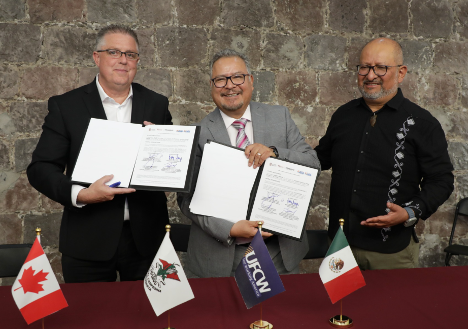 A fin de fortalecer la protección de los derechos laborales de las y los mexiquenses, así como impulsar acciones de cooperación internacional en beneficio de quienes buscan oportunidades fuera del país, el secretario del Trabajo del Estado de México, Norberto Morales Poblete, firmó un acuerdo con el presidente del Sindicato Unido de Trabajadores de la Alimentación y el Comercio UFCW Canadá, Barry Sawyer.