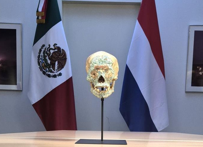 Países Bajos realizó la devolución de un cráneo humano de origen mixteco con incrustaciones de mosaicos a México, luego que el gobierno federal realizara la solicitud. La entrega oficial fue realizada oficialmente a través de la Embajada mexicana en La Haya.
