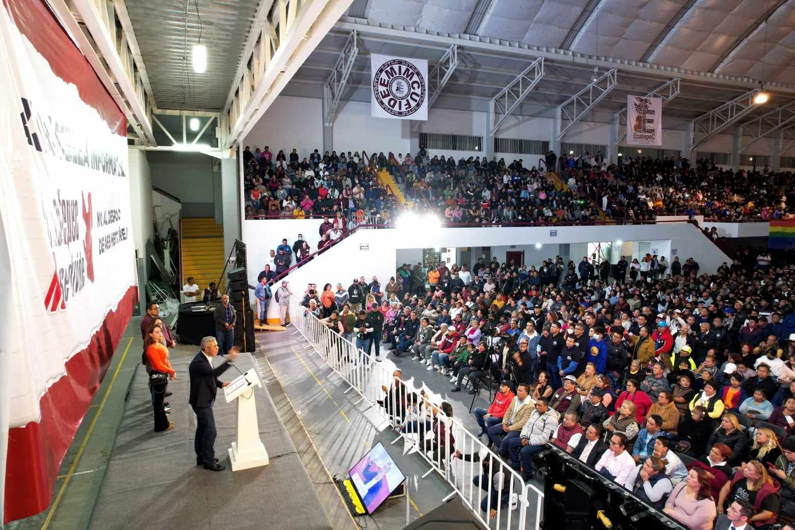 Representantes de los partidos políticos Movimiento de Regeneración Nacional (MORENA), Acción Nacional (PAN), Revolución Democrática (PRD) y del Trabajo (PT) exigieron al Instituto Electoral del Estado de México aplicar medidas cautelares con la publicidad “roja”  que el gobierno de Eruviel Ávila Villegas colocó por toda la entidad, la cual no especifica programa social al que hace referencia.