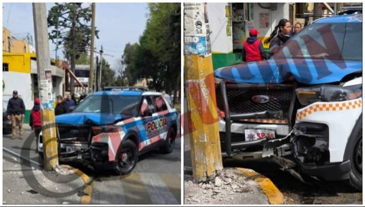 Una patrulla de la Dirección de Seguridad Pública de Metepec se impactó contra un poste de concreto la tarde de este martes, mientras realizaba la persecución de una motocicleta sobre la avenida Gobernadores, a la altura de la colonia Infonavit San Francisco.