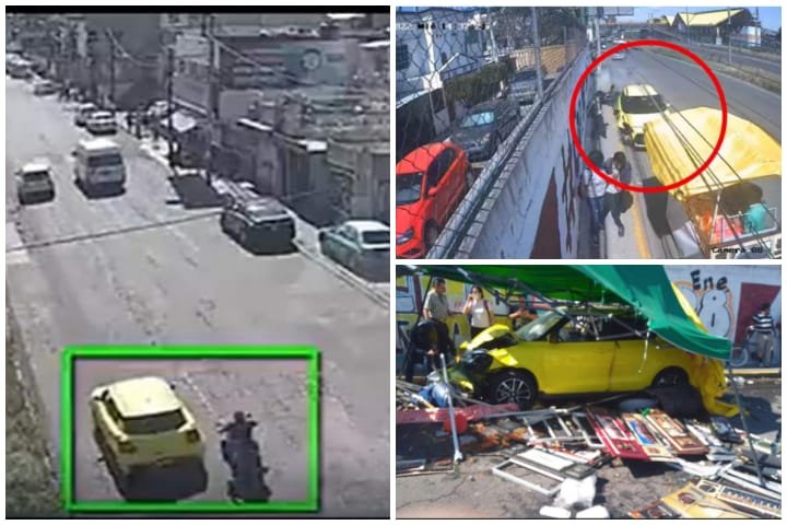 Tras el fuerte impacto con el biker, el vehículo se estrelló contra un puesto ambulante de comida chatarra instalado afuera del Metro Ecatepec, donde se encontraban varias personas comprando.