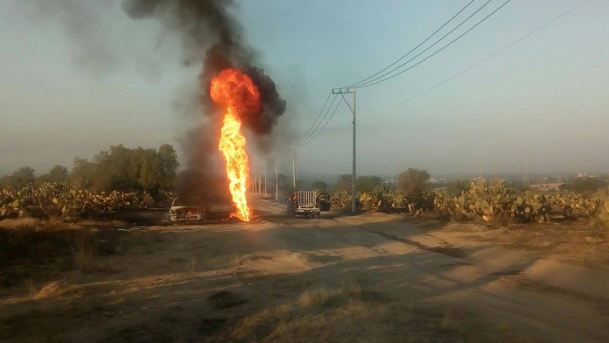 Se incendia toma clandestina de Pemex en Axapusco