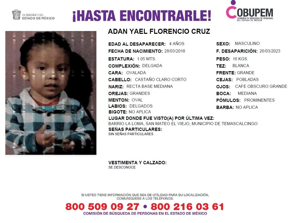 Read More*Redacción Diario Evolución* Familiares del pequeño Adán Yael Florencio Cruz de tan solo 4 años de edad lo buscan y