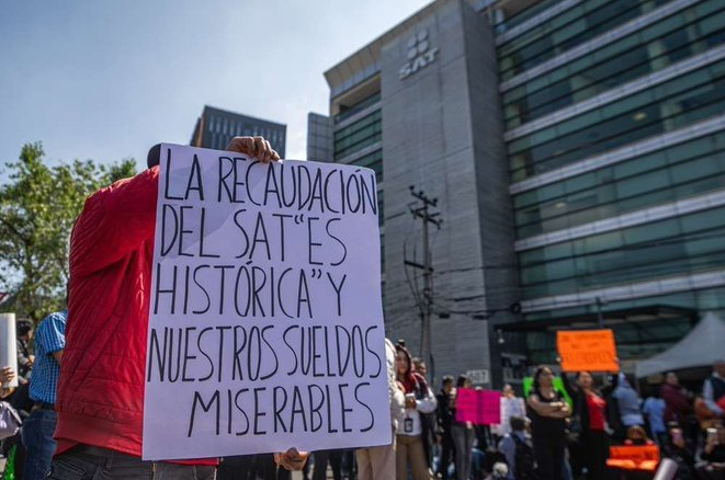 Trabajadores del Servicio de Administración Tributaria (SAT) realizan un nuevo paro de labores para exigir mejores condiciones de trabajo, por lo que varias oficinas de la Ciudad de México se encuentran bloqueadas y se prevé que en el transcurso del día realicen bloqueo de vialidades para exigir el cumplimiento de sus demandas. Las protestas se realizan a nivel nacional.