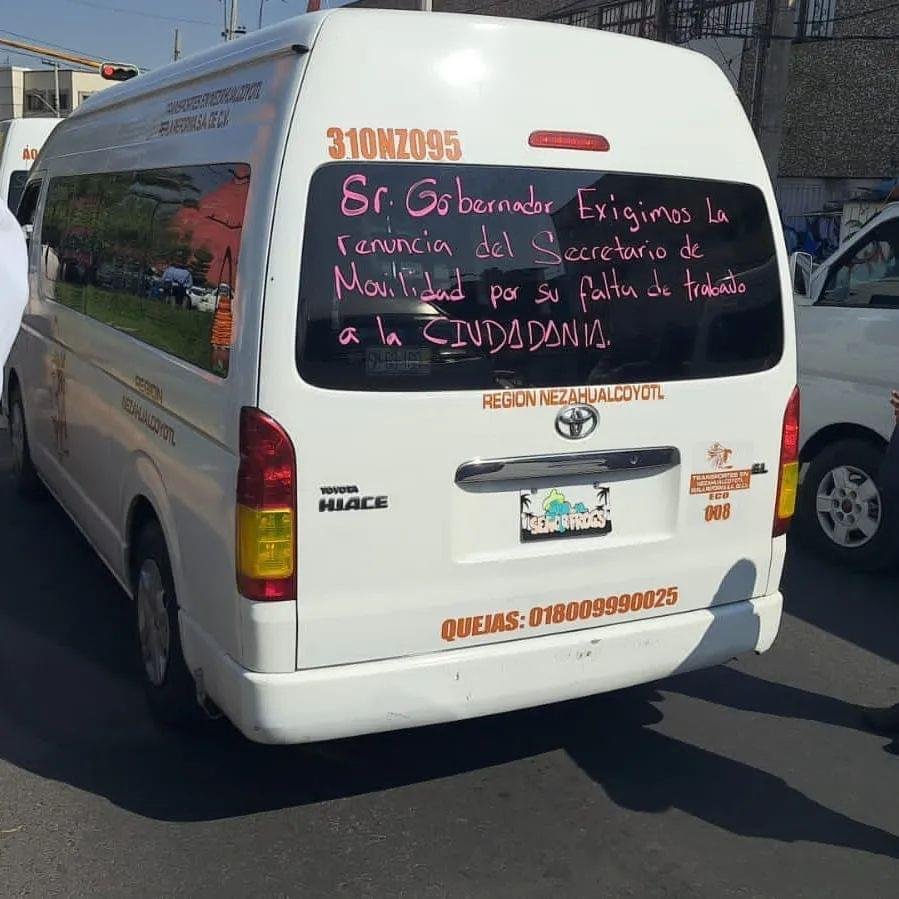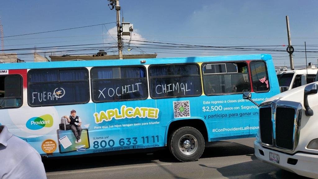 En camiones y combis los operadores escribieron frases como “Fuera Xóchitl”, “No más extorsión”, además, los usuarios también se unieron a la protesta y exigen más seguridad para la población del municipio.