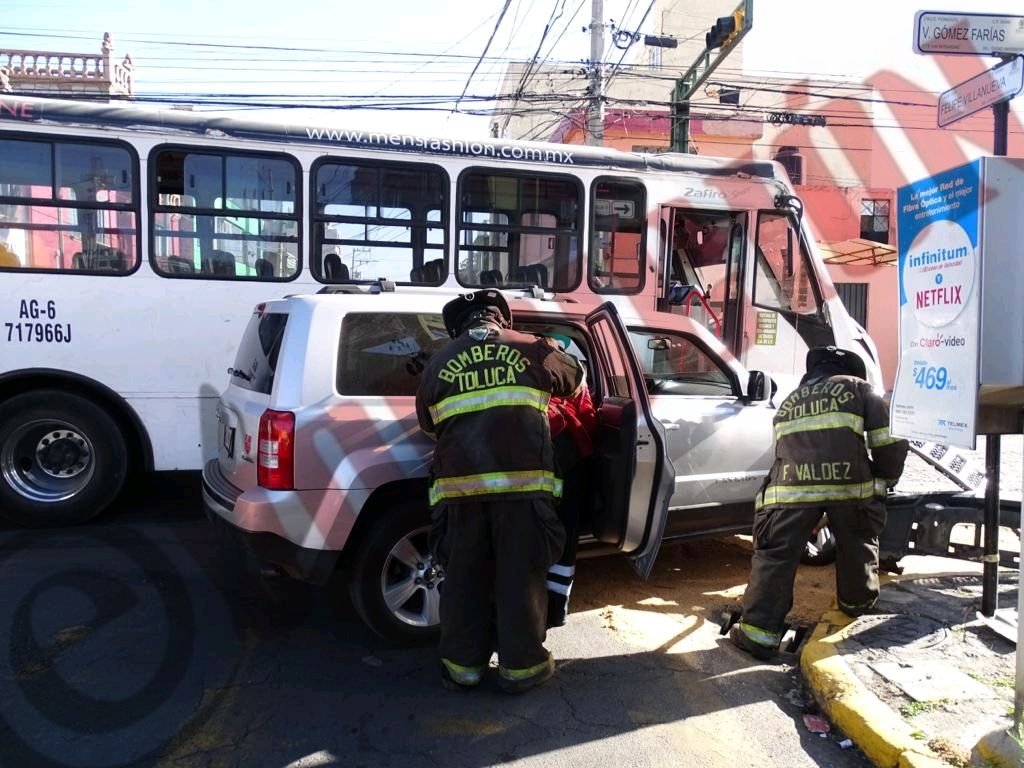 Una persona lesionada y daños materiales fue el saldo de un accidente entre un autobús y una camioneta particular en la colonia San Bernardino en Toluca.