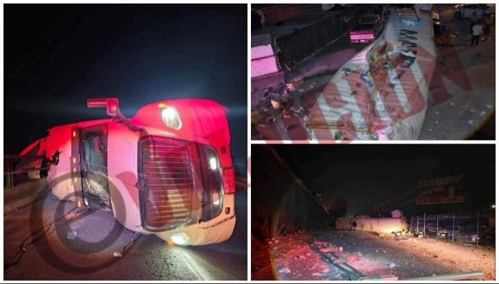 Volcadura de tráiler en Atlacomulco movilizó a elementos de emergencia en la madrugada